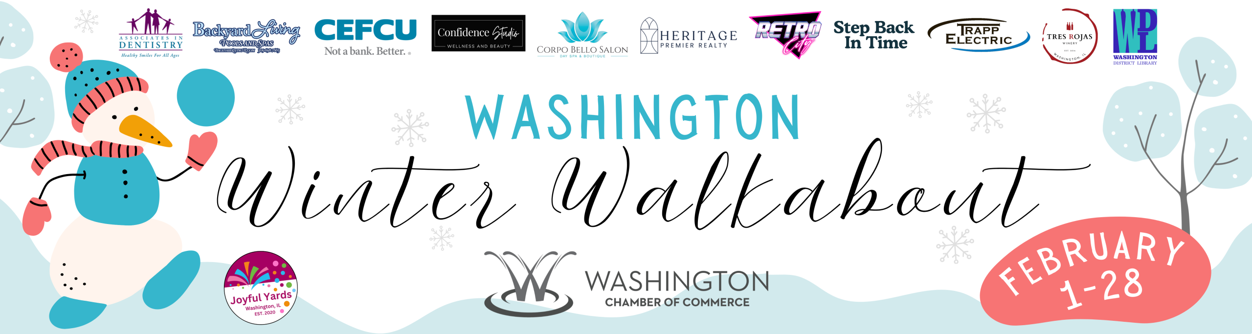 Don’t forget to snap photos along the way! Share your Winter Walkabout adventures on Facebook or Instagram using #WashingtonWinterWalkabout and tag the Chamber—you never know when a surprise reward might pop up 👀